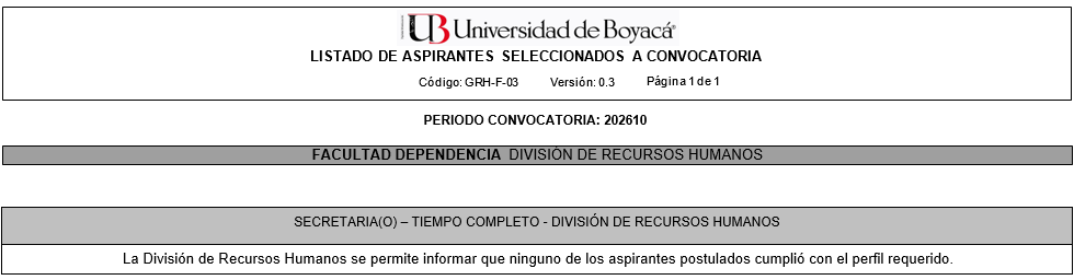 Secretaria(o) División de Recursos Humanos - Sede Tunja