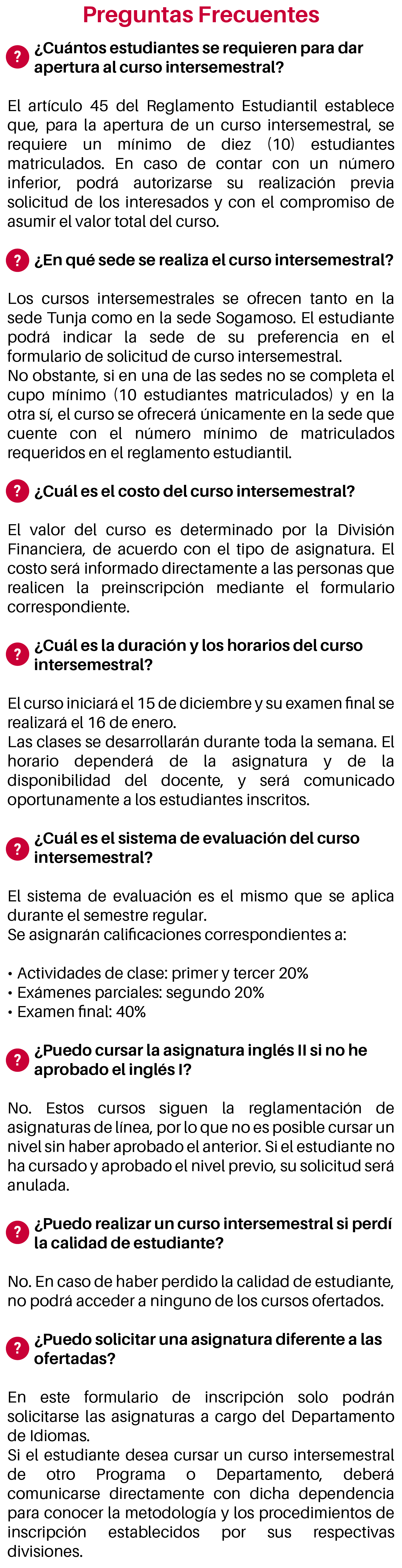 Cursos Intersemestrales Departamento Idiomas segundo semestre de 2025