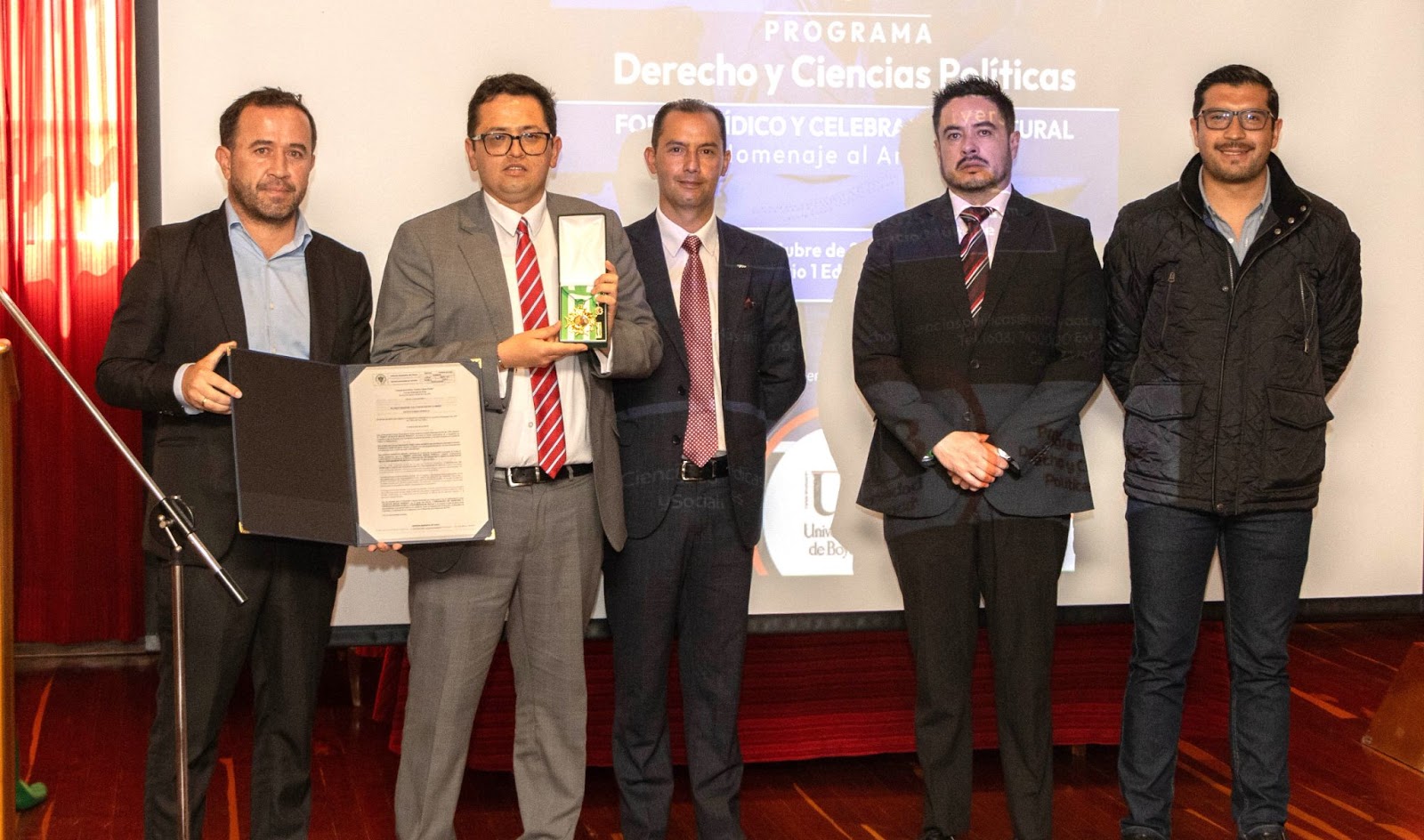 Durante la celebración, el Honorable Concejo Municipal de Tunja otorgó, al director del programa de Derecho y Ciencias Políticas, Dr. Héctor Alexánder López Leguizamón, la "Orden Gustavo Rojas Pinilla", como reconocimiento a la destacada labor del programa en la formación de profesionales comprometidos con la justicia.