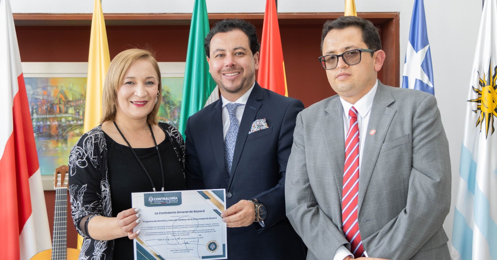 Asimismo, la Contraloría Departamental de Boyacá, en cabeza del Dr. Juan Pablo Camargo Gómez, exaltó al programa académico por su destacada trayectoria y notable impacto de los egresados en el fortalecimiento del sector público y jurídico a nivel regional y nacional.